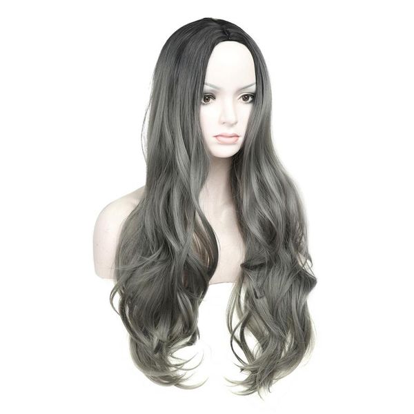 24inch Wig Women Long Curly Hair Natural Wave Gradient Grandma